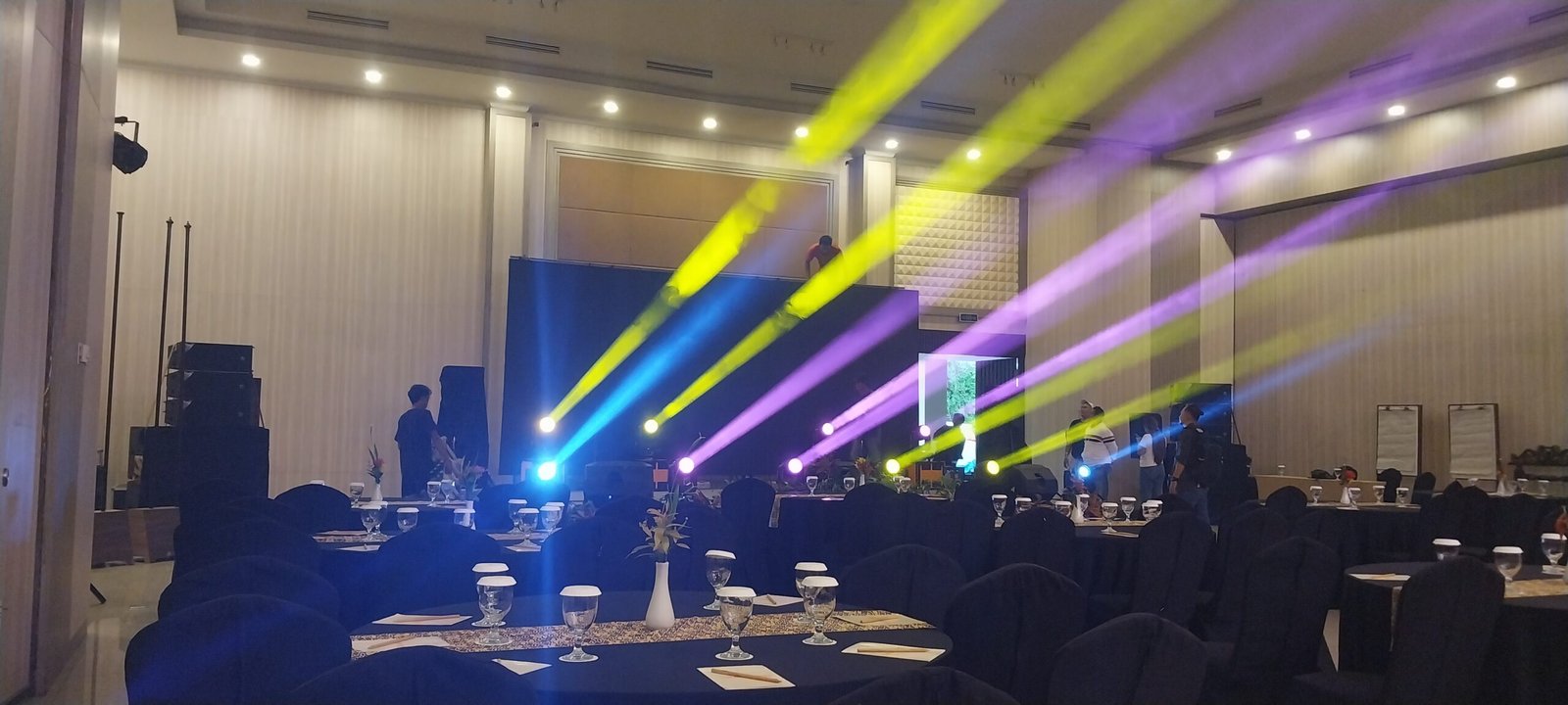 Lighting atau tata cahaya juga merupakan aspek penting dalam menciptakan suasana acara yang memukau. Arsyafin Production menawarkan berbagai jenis lighting, mulai dari pencahayaan panggung, efek cahaya, hingga pencahayaan dekoratif yang dapat disesuaikan dengan tema acara. Fleksibilitas ini memungkinkan penciptaan atmosfer yang tepat sesuai dengan kebutuhan acara.